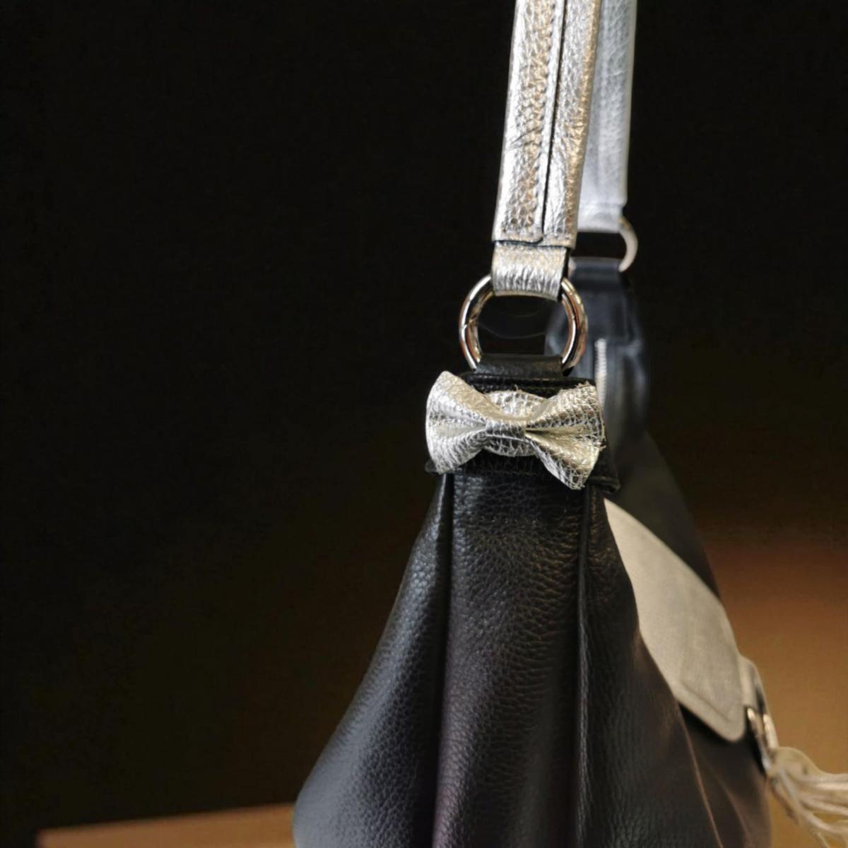 Ce porte-pression latérale en cuir martelé ou en cuir suédé, vous permet de décorer le sac Philosofia au niveau de l'anneau mousqueton.