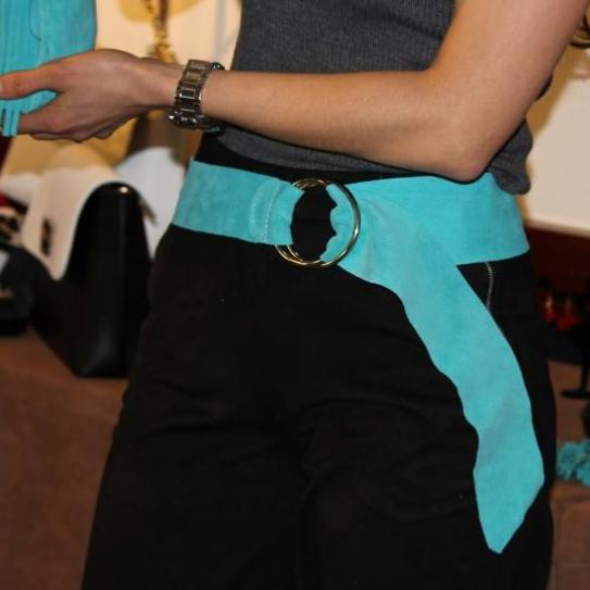 Cintura in pelle scamosciata con anello d'argento.