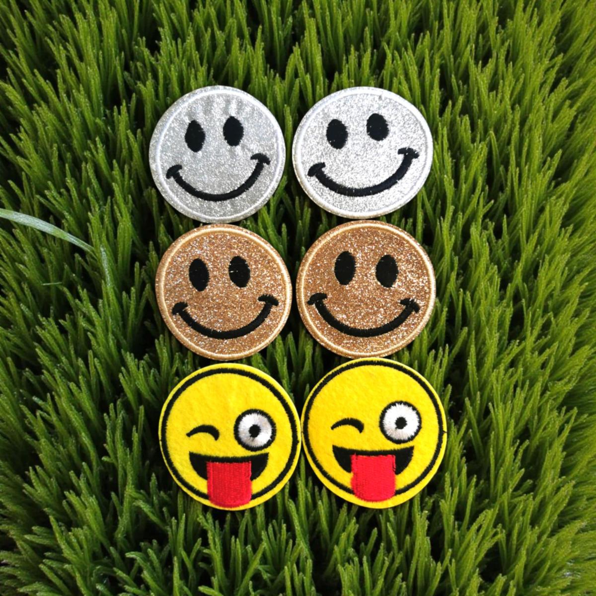 Das Smiley-Accessoire auf goldenem oder fun Grund wird einzeltn verkauft.