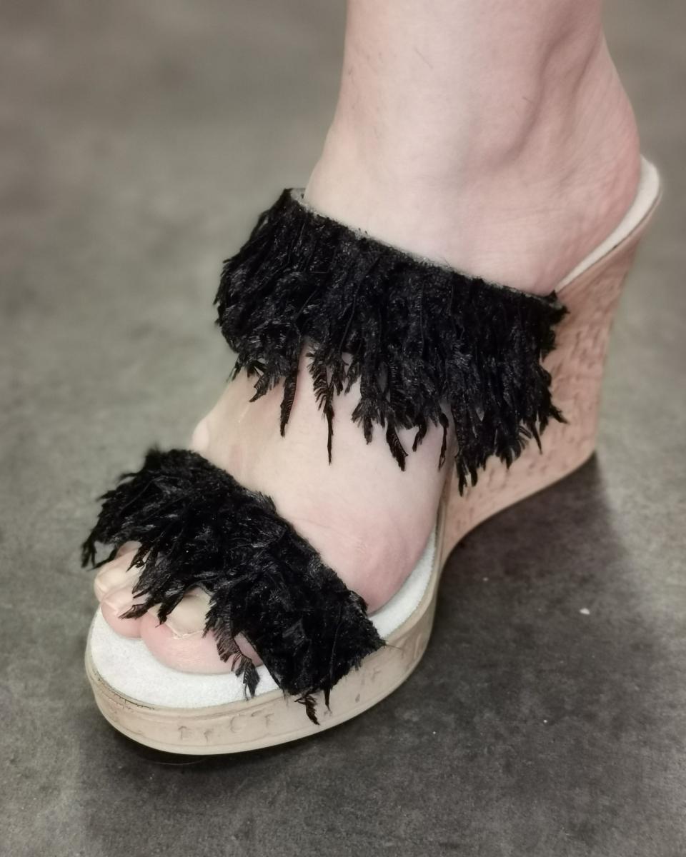 Ein Paar Zehenriemchen aus Plumetti-Stoff