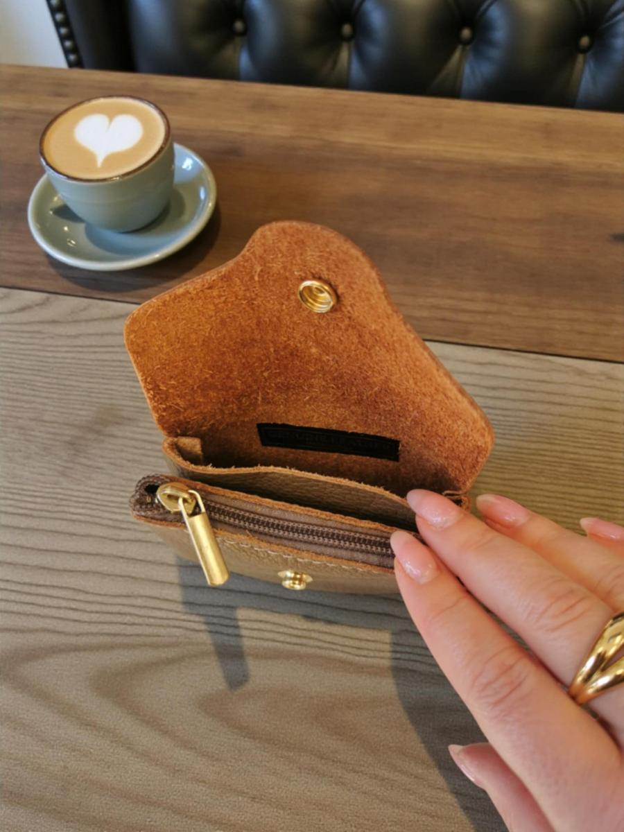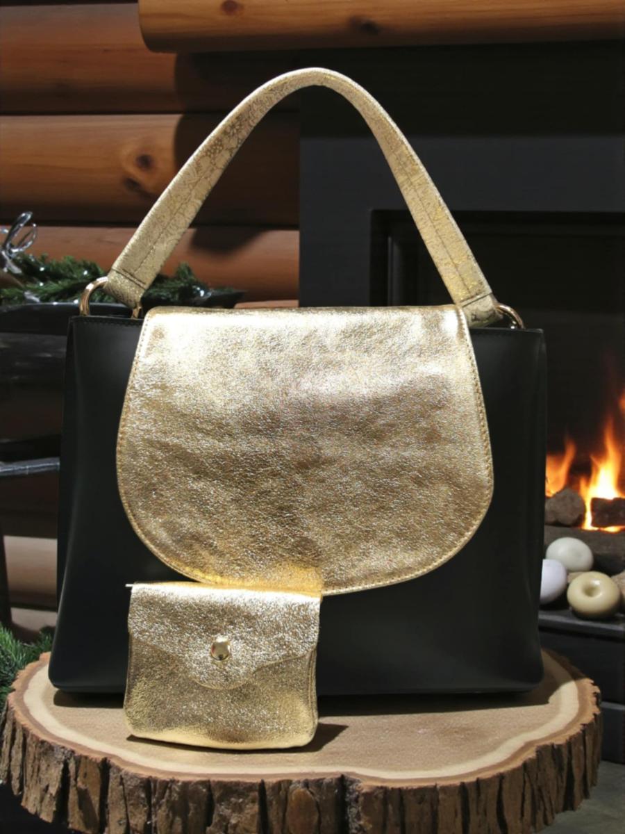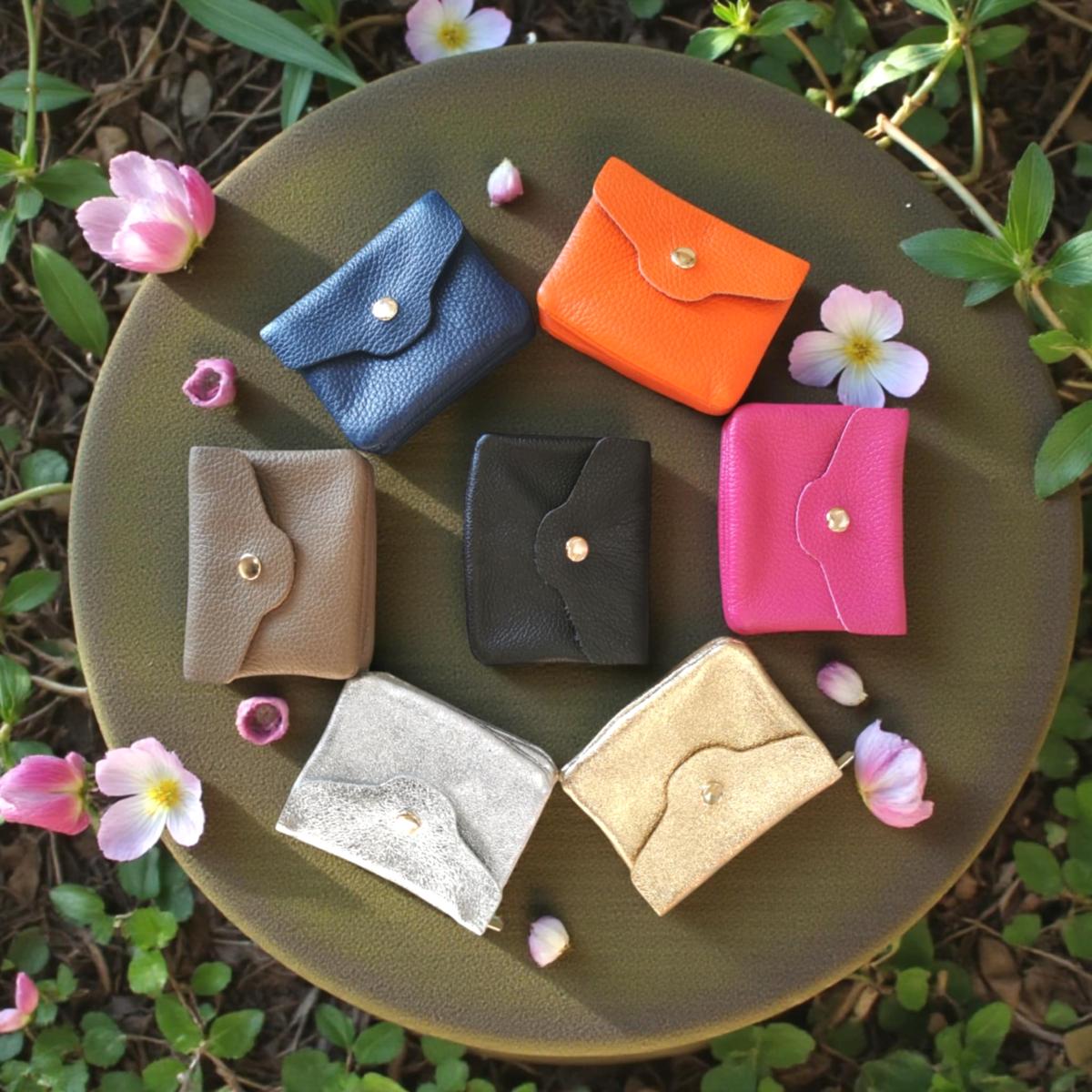 En cuir martelé pour les coloris : noir, taupe, bleu marine, fuchsia et orange